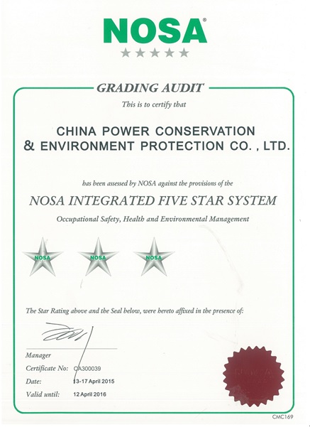7月13日,經(jīng)過(guò)NOSA科學(xué)、嚴(yán)格地考評(píng),國(guó)能中電被正式授予“NOSA五星管理系統(tǒng)”三星級(jí)證書。