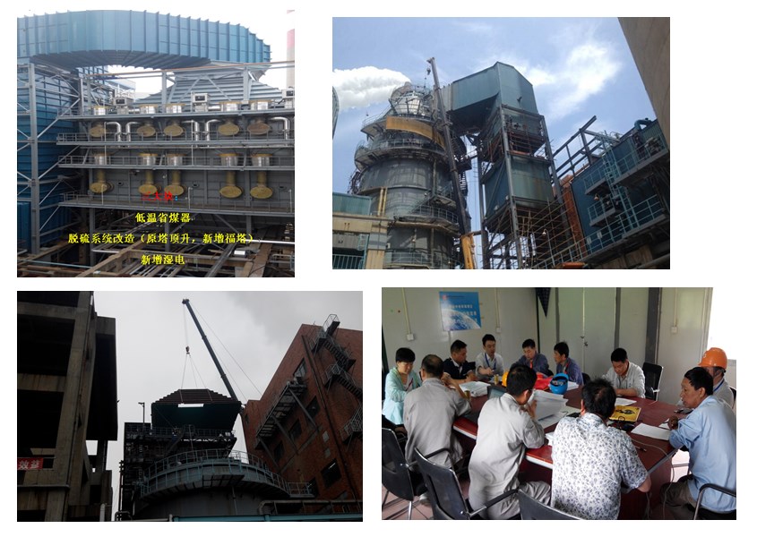 5、6號機組脫硫提效改造項目;包括新增低溫省煤器、原吸收塔增高、新建副漿液箱、新增濕式電除塵現(xiàn)場所必需的所有的建筑、安裝工作,以及新增設備的附屬系統(tǒng)安裝、設備基礎制作、與新設備沖突的舊設備、煙道等拆除、清理、恢復,設備安裝完畢后實驗檢驗、單體調(diào)試,配合試運直至168結束。
