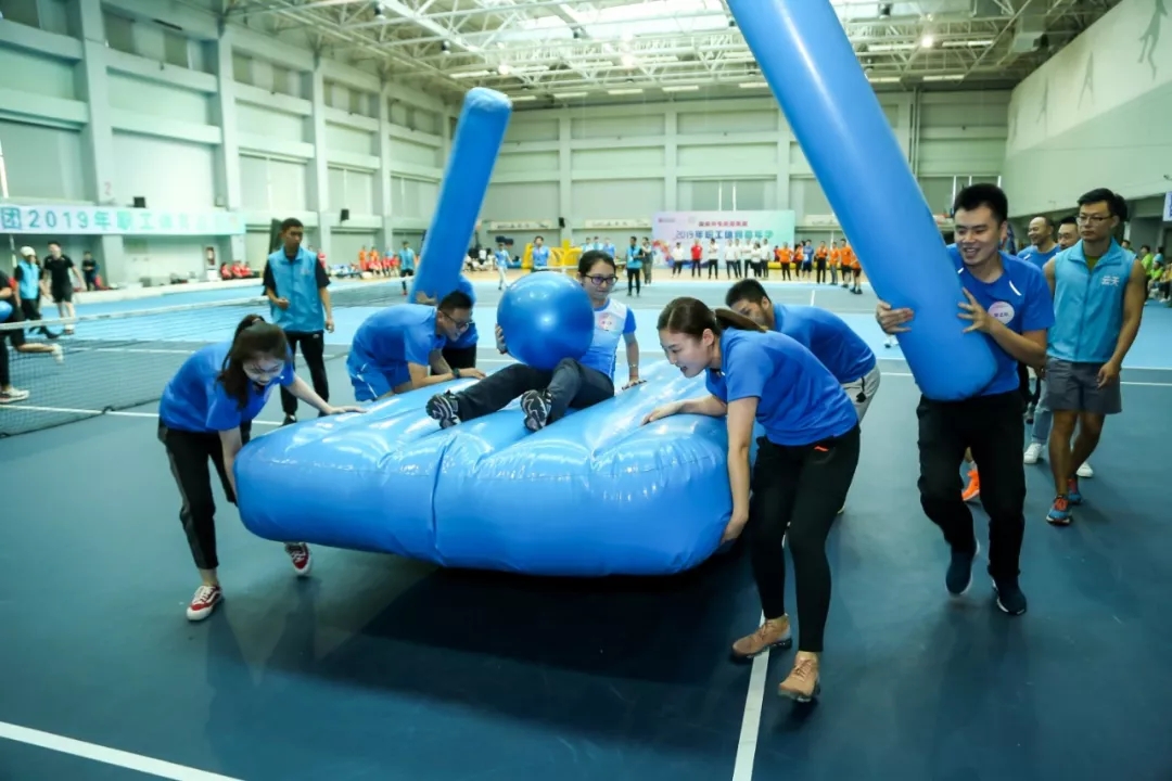 此次活動的項(xiàng)目經(jīng)過了精心設(shè)置,將在職工中普遍開展的羽毛球、籃球項(xiàng)目設(shè)置為專業(yè)競技項(xiàng)目,此外,綜合考慮職工身體素質(zhì)差異和群眾參與性,設(shè)置了輕量化、趣味性更強(qiáng)的團(tuán)體競技項(xiàng)目七項(xiàng):滾滾向前、旋轉(zhuǎn)飛碟、旱地龍舟、漢諾塔、動感顛球、超級障礙賽、拔河。