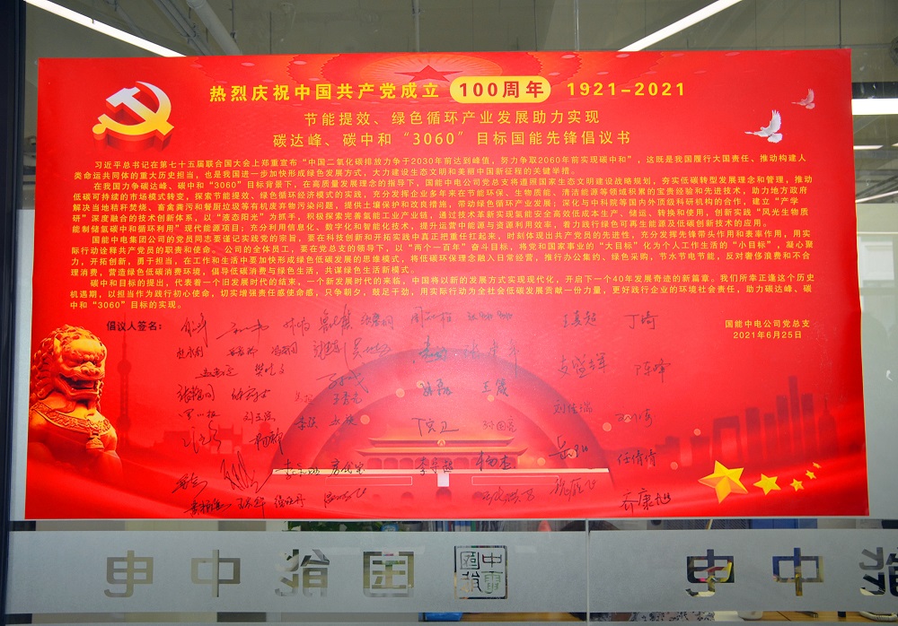 這是國能中電全體黨員及廣大員工對“3060” “碳中和”國家戰(zhàn)略的最佳解讀,是傳承紅色基因的莊嚴(yán)承諾,是踐行綠色使命的科學(xué)行動(dòng)。在公司未來的發(fā)展進(jìn)程中,我們將把黨性融入骨血,用先進(jìn)的環(huán)保設(shè)備控碳減碳,用高科技的環(huán)保技術(shù)守護(hù)綠水青山。