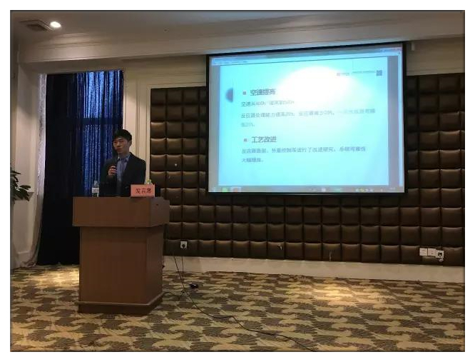國能中電非電事業(yè)部總工程師納宏波博士在技術(shù)研討會會場就“炭基催化劑干法煙氣多污染物一體化脫除技術(shù)”與大家分享最近技術(shù)成果。